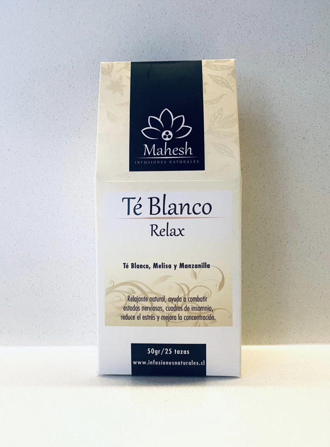 Té blanco, Melisa y Manzanilla. Propiedades: Relajante natural, ayuda a combatir estados nerviosos, cuadros de insomnio, reduce el estrés y mejora la concentración.