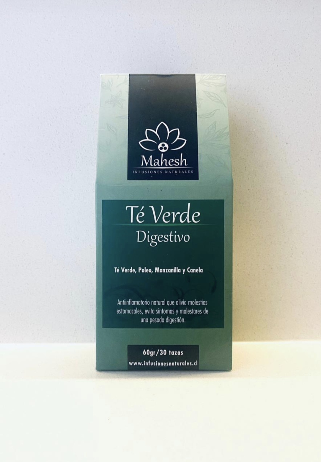 Té verde, manzanilla, canela y poleo Propiedades :Antinflamatorio natural que alivia molestias estomacales, evita síntomas y malestares de una pesada digestión.